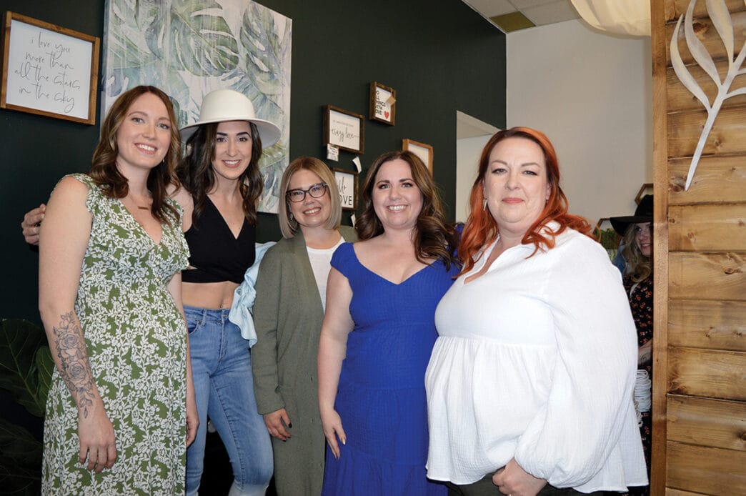 Whitney Bota, owner of Better You Salon, second from right, is flanked on the left by Courtney Madsen, Karley Kramer, Vickie Bailey with Kellee Lacombe on the right. The four women were treated to a hair and fashion makeover during Mother’s Day at the salon on Saturday. A total of 31 women bought tickets to the event supported by numerous local businesses. Geoff Lee Meridian Source