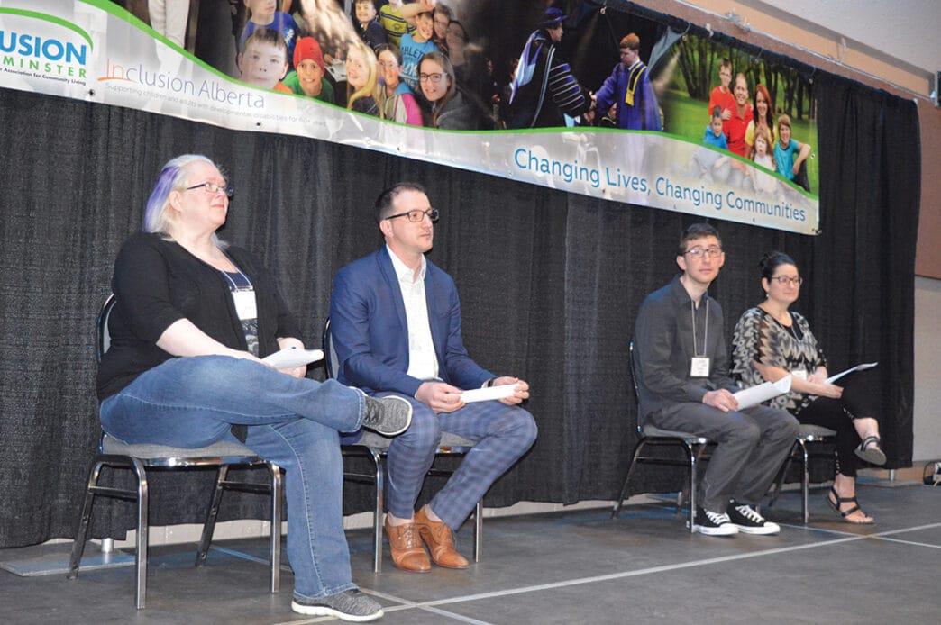 Jen Alexus, left, Bevin Hamilton, Nadia Lehman and Jacob Gordon shared their experiences to help raise $112,230 for persons with developmental disabilities at the 11th annual fundraising breakfast for Inclusion Lloydminster and Inclusion Alberta  at the Stockade Convention Centre on May 5. Geoff Lee Meridian Source