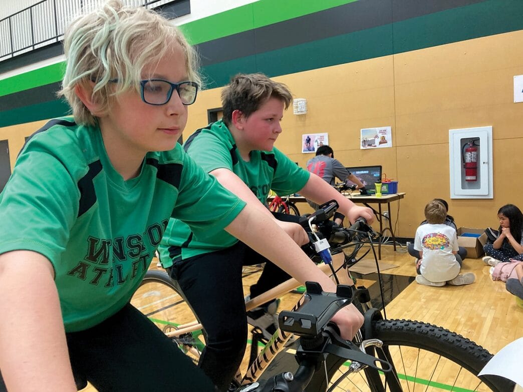 All of the LPSD bikes are connected to the Zwift tracking app with students riding the same virtual course together in shifts.
