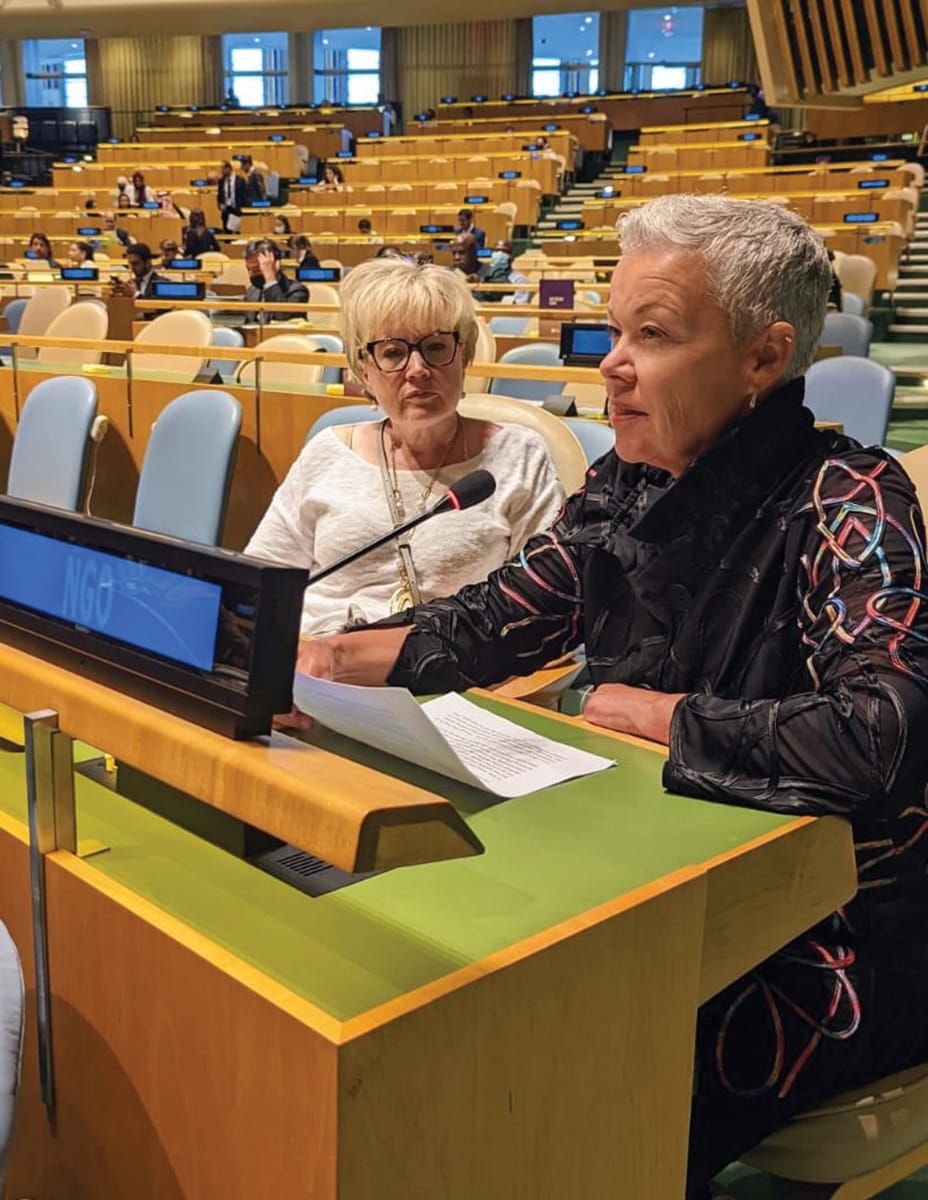 Robin Acton, right, president of Inclusion Canada, delivered her remarks about persons with intellectual and physical disabilities to delegates at the UN General Assembly in June. On her left is the organization’s executive vice-president, Krista Carr. Supplied Photo