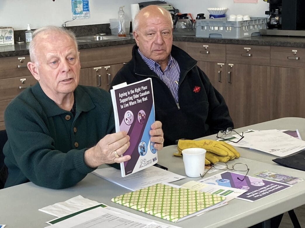 Seniors Care Society president, Graham Brown, held up a copy of the study that is on point with plans by Alberta and Saskatchewan health authorities to make aging in place a major support strategy.