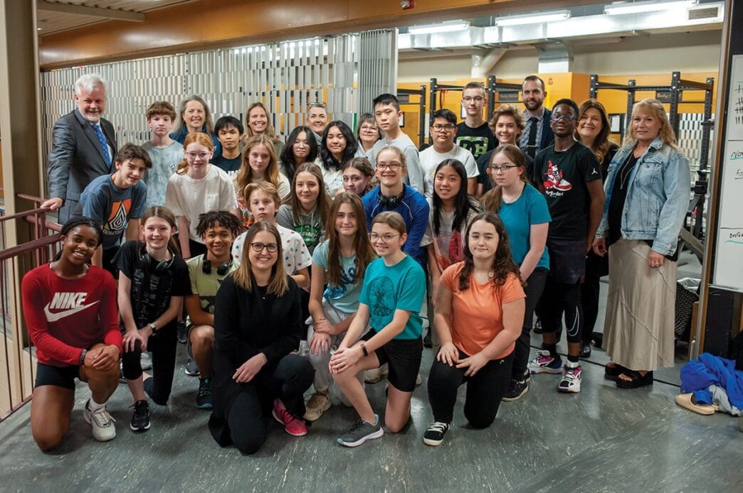 Holy Rosary High School’s athletic director, Ashley Fullerton, (front row, centre, left) was left speechless last Monday after being told she had won the LCSD’s Catholic Education Excellence Award. Taylor Weaver Meridian Source