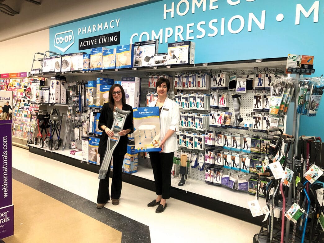 He and other fit athletes or individuals on the mend are potential customers for the Co-op’s Active Living compression garments and mobility items like canes and walkers.