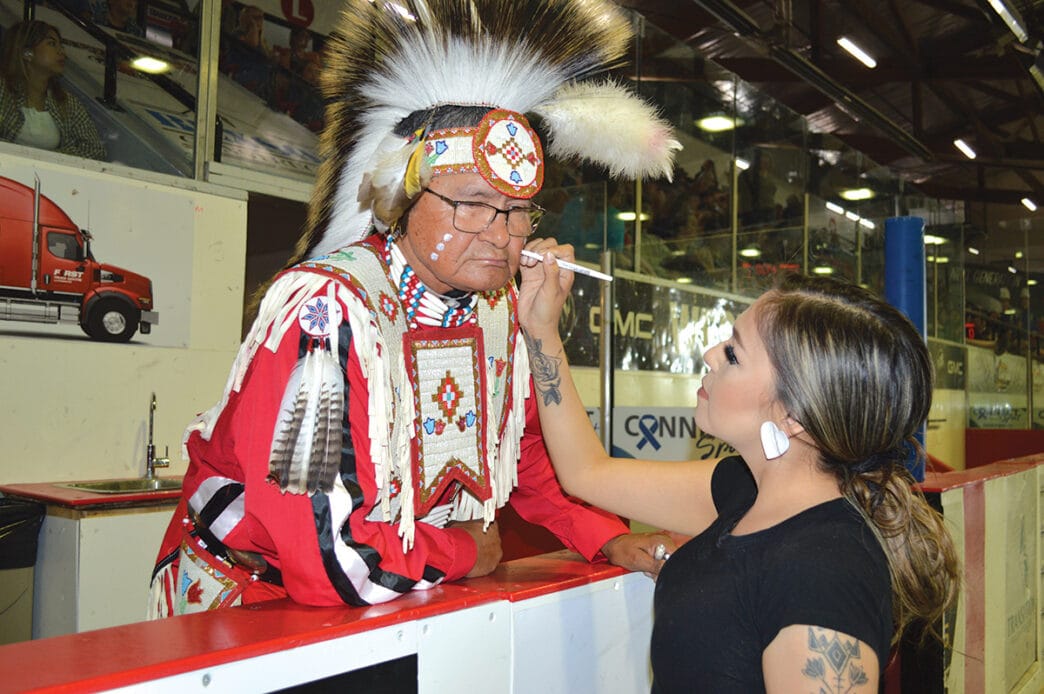 The cultural part of the powwow was on the mind of dancer Richard Tootoosis from Poundmaker Cree Nation, who was set to go after his daughter Keeley painted his face.