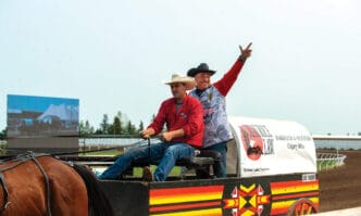 “That’s why I’m here; the four-wagon races,” he said. “They invite me, but I don’t go to Calgary with their three wagons. I believe in four chuckwagons; this is our heritage, and we have to stick up for it.”