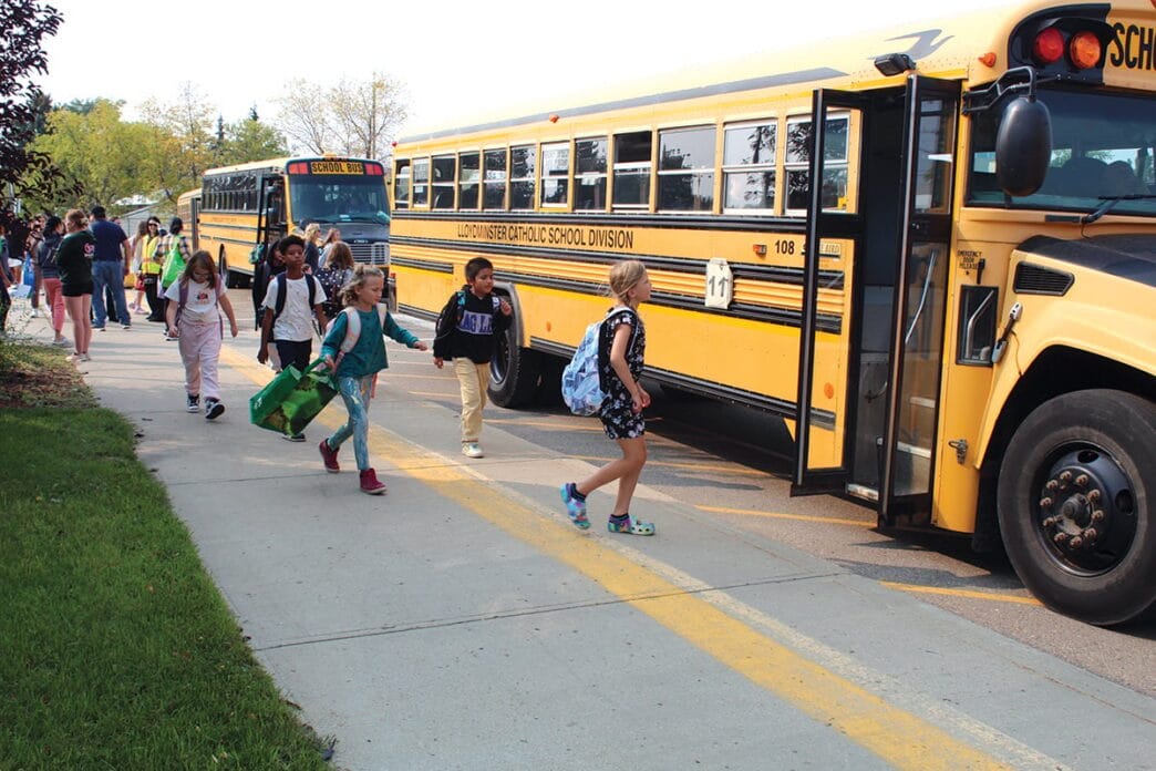 St. Mary’s Elementary School students were ready to hop on the bus after their first day back from summer vacation on Sept. 5.  Jeannette Benoit-Leipert