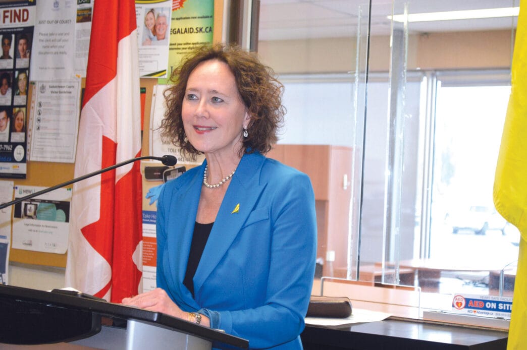 Saskatchewan Minister of Justice and Attorney General, Bronwyn Eyre, teamed up with Lloydminster MLA Colleen Young to re-open the provincial courthouse in Lloydminster last October as a full-service court. Meridian Source File Photo