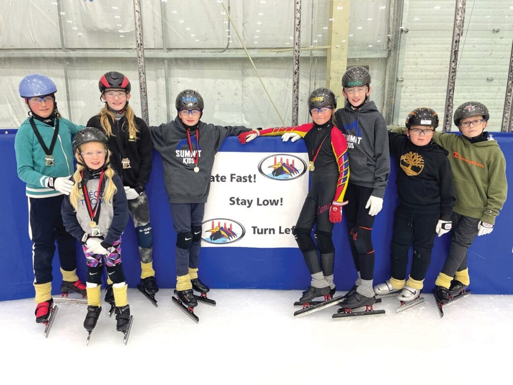 The Border Blades will be looking to pick up more medals when they host Fire on Ice XV at the Servus Sports Centre on Nov. 25. At the Red Deer Central Lions annual Short Track Meet on Nov. 4, young skater Adeline, second from left, won gold with Gage, fourth from left, winning a silver and Gracie left, in second group on the right, earning gold. Supplied Photo