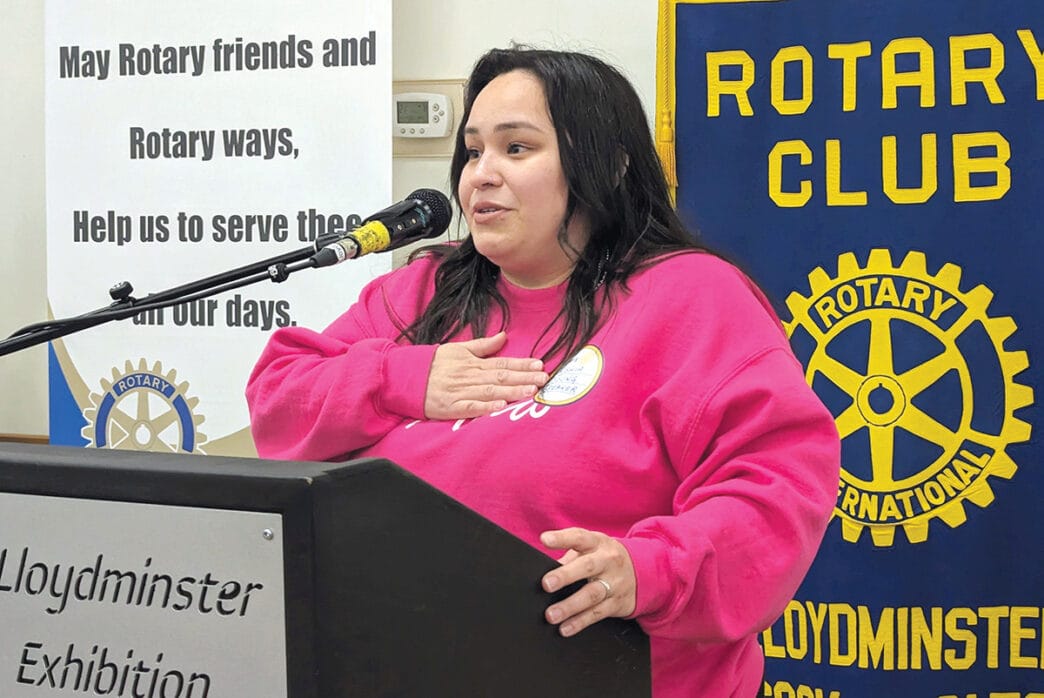 Tinisha Young, manager of Indigenous support services at Lakeland College, spoke about the need for heartfelt, authentic land acknowledgements at the Rotary Club of Lloydminster’s Monday lunch. Geoff Lee Meridian Source