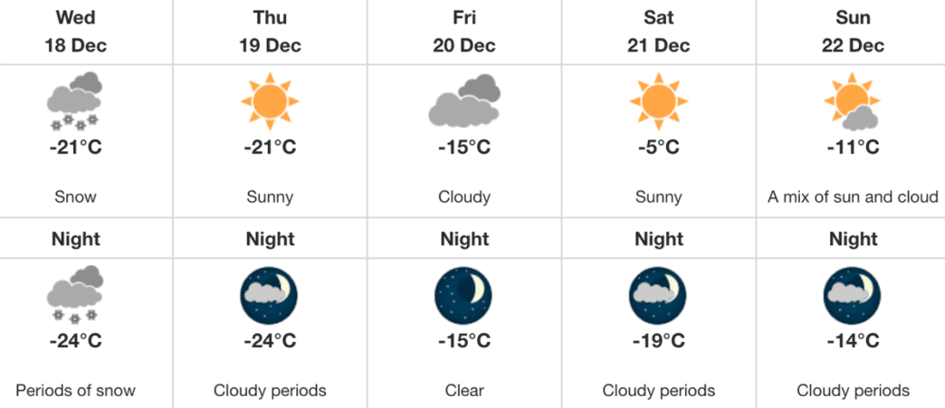 The high is -21°C and the low is -24°C.
