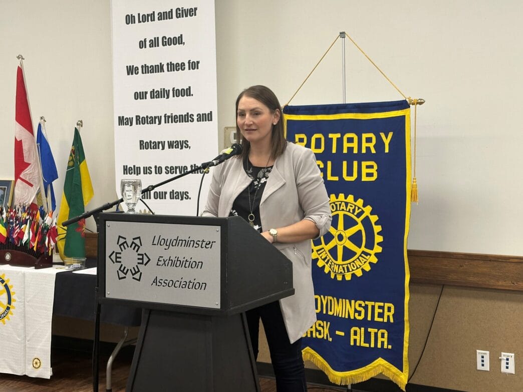 Speaking to a room of roughly 30 Rotarians, Falk pointed to Lloydminster’s unique challenges as a city with roots in both Saskatchewan and Alberta. Although not a federal problem, she highlighted the inability to properly share medical information within our own city.