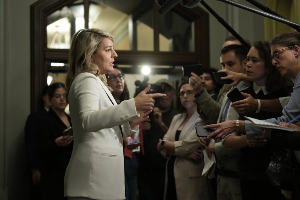 Industry Minister Melanie Joly speaks with media before attending cabinet on Parliament Hill in Ottawa on Tuesday, Sept. 16, 2025. THE CANADIAN PRESS/Adrian Wyld