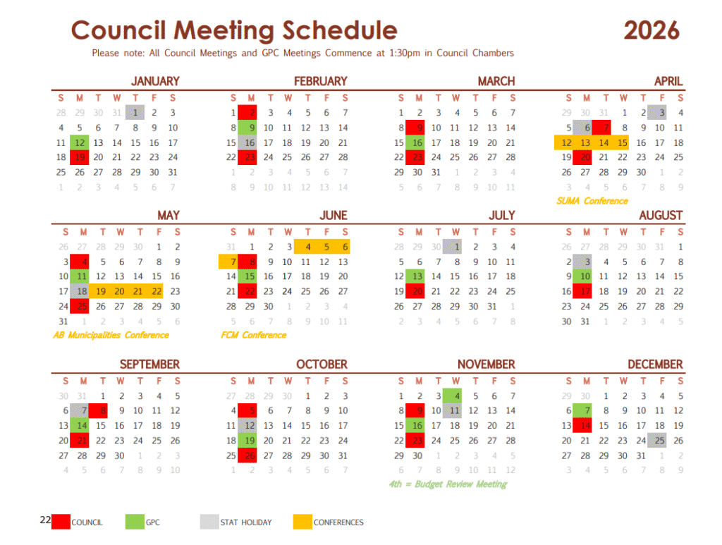 “This schedule maintains Monday meeting dates and includes the annual budget review on Nov. 4, 2026,” said Shannon Rowan, interim city clerk.