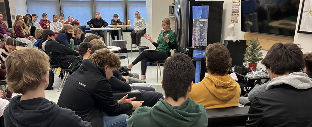 About 60 students and teachers from Pursuit heard from one of their own in Thiessen, a 2025 graduate of Lloydminster Comprehensive High School who earned a full-ride scholarship to study at Southeastern Louisiana and continue playing the sport she loves at a high level.