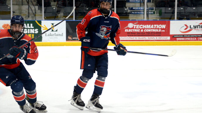 The AJHL’s Bobcats are down to six healthy defencemen, with Noah Smith back on the sidelines in his recovery from shoulder surgery last year. Lloydminster lost a mainstay on the blue-line as Esteban Cinq-Mars joined the QMJHL’s Val-d’Or Foreurs just as the Christmas break began.