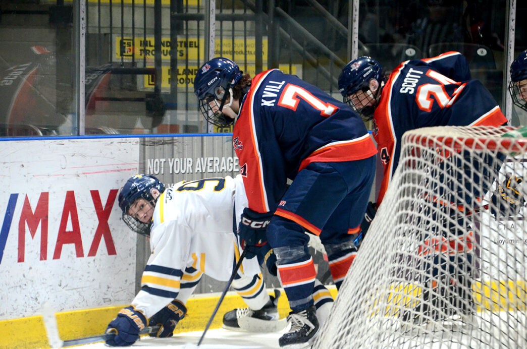 Capping his three-point afternoon, Pratt made a money pass to Connor Nickle, whose goal put the Lancers up 6-0. It was that kind of a playmaking afternoon, as captain Rhett Romanchuk showed in setting up Doolaege with precision. It’s as though the veteran Romanchuk, a high-scoring defenceman, is a linemate.