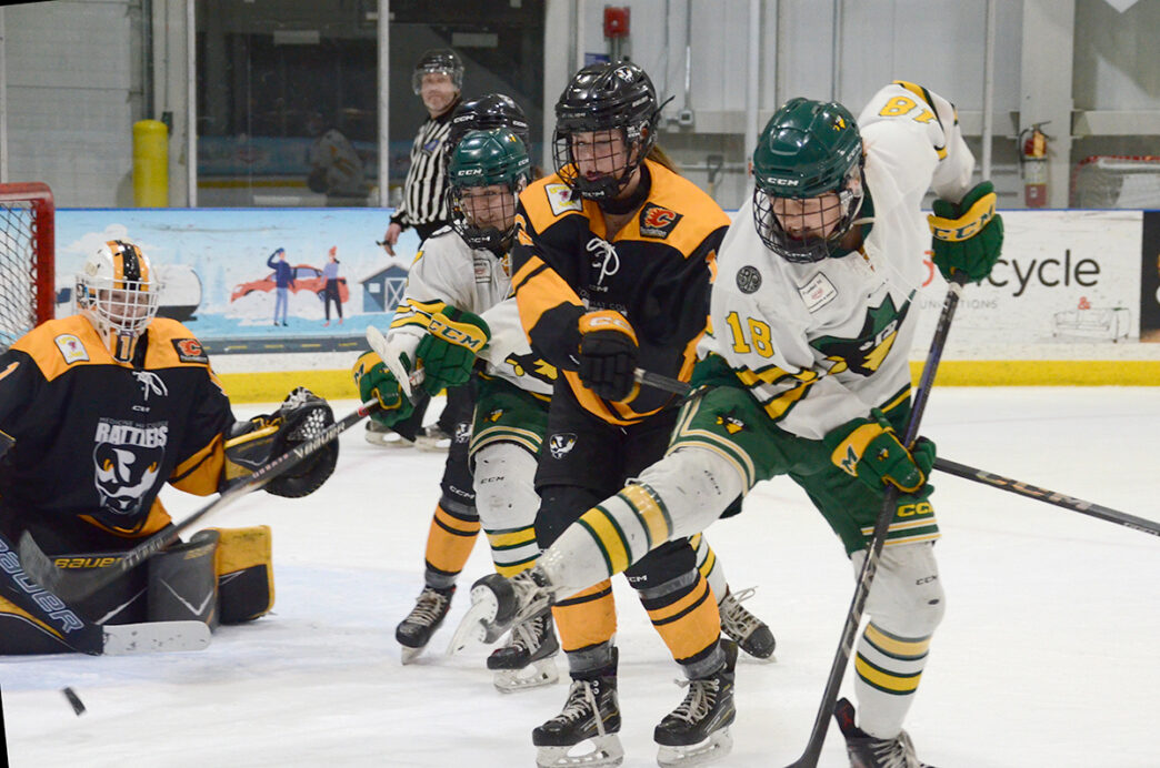 Elizabeth McLeod, with 18 saves, recorded the Rustlers’ shutout victory. Natalie Pelchat had a two-goal weekend.